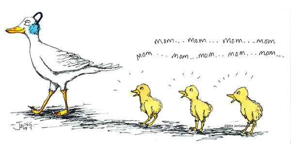 It used to drive my mother crazy when we always yelled her name across the house rather than going to find her to ask her a question. Her favorite part of 'Finding Nemo' is the seagulls who chant "Mine! Mine! Mine!" I thought it would be cute to combine those two ideas in a birthday card for her and wish her a mom-free day.